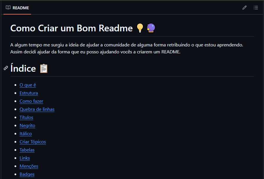 Com isso criei um projeto ensinando ao meu ver como criar um README utilizando as linguagens de marcação deforma a você mesmo criar e estilizar com o Markdown.